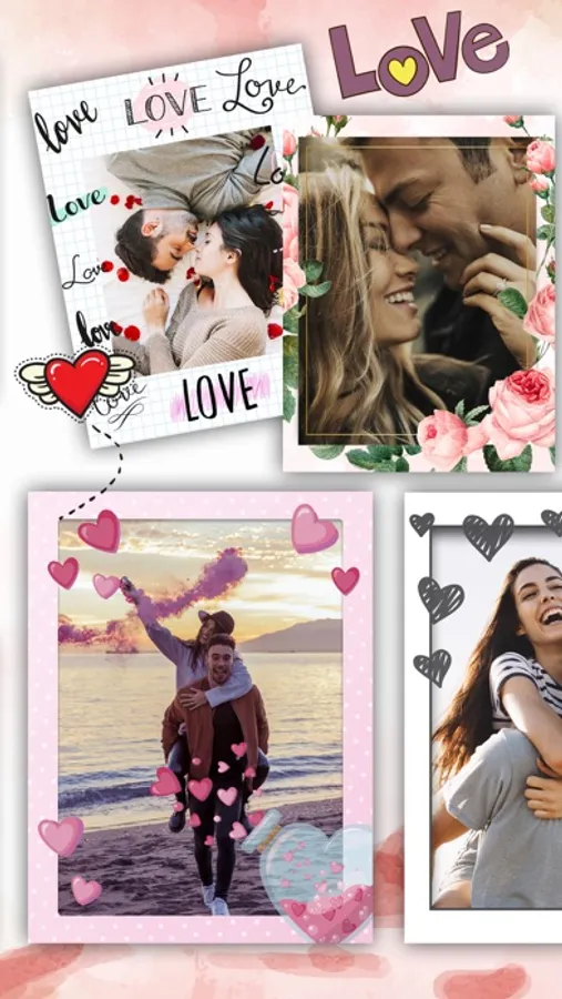 A quick and easy way to decorate your pictures with a personalized love photo frame. Frame your pictures and write messages on them. Share your romantic memories.