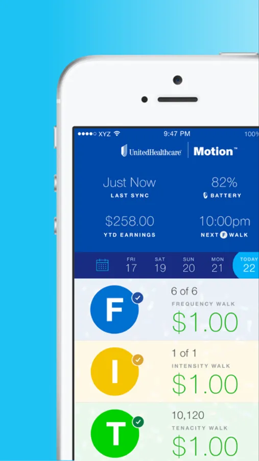 Simply put, UnitedHealthcare Motion® 1) gives you three daily walking goals and 2) rewards you financially for achieving them.
