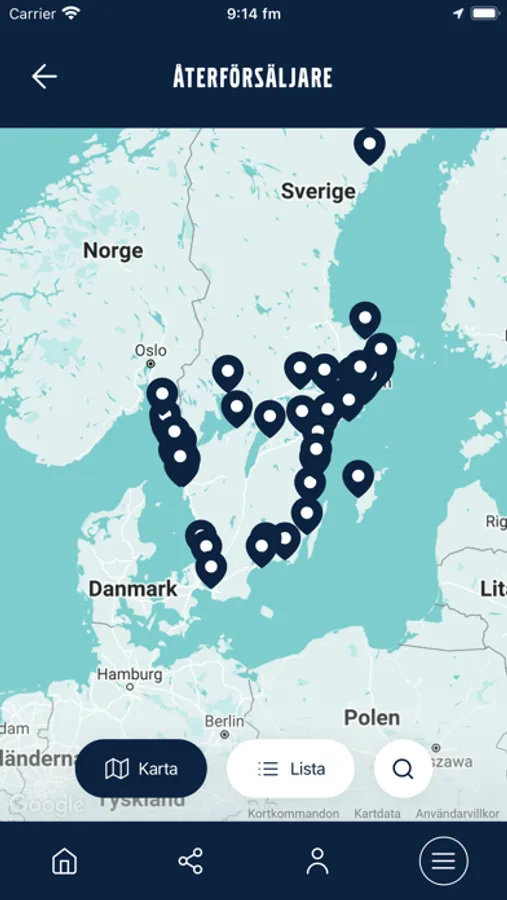 * Använda kartfunktionen för att hitta närmsta Volvo Penta-återförsäljare med tillhörande öppettider, kontaktuppgifter, serviceområden och eventuell webshop.
