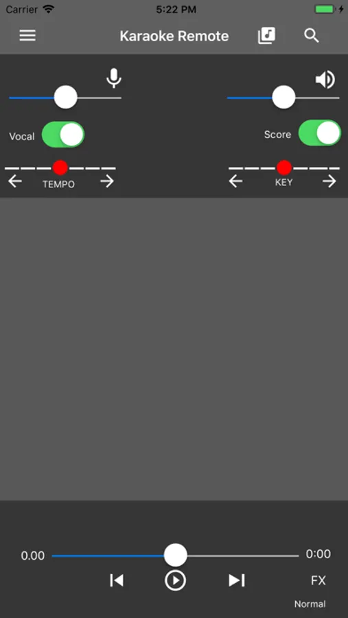- Connect to the Masterpiece karaoke player, send your playlist and use the app as a remote control.