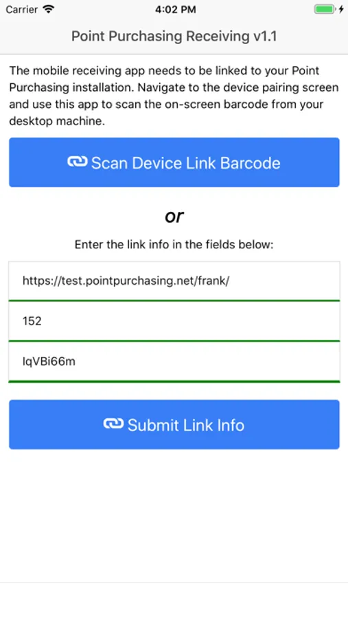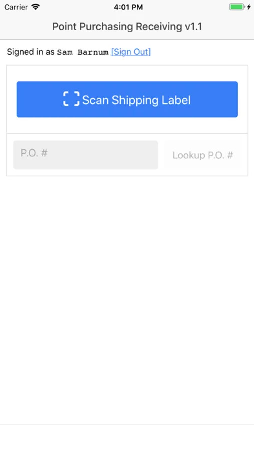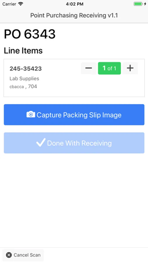 Point Purchasing™ mobile application for scanning incoming packages, capturing shipping labels, and submitting package receipt notifications to your Point Purchasing™ application instance.
