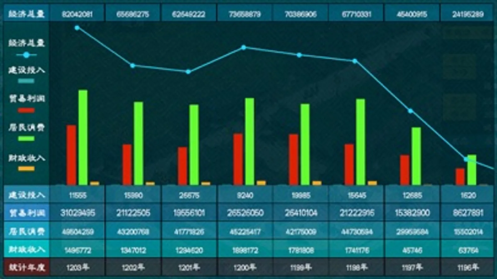 • 我们详细模拟了修筑长城、修建大运河、开通丝路贸易以及古代经济运行的数据。