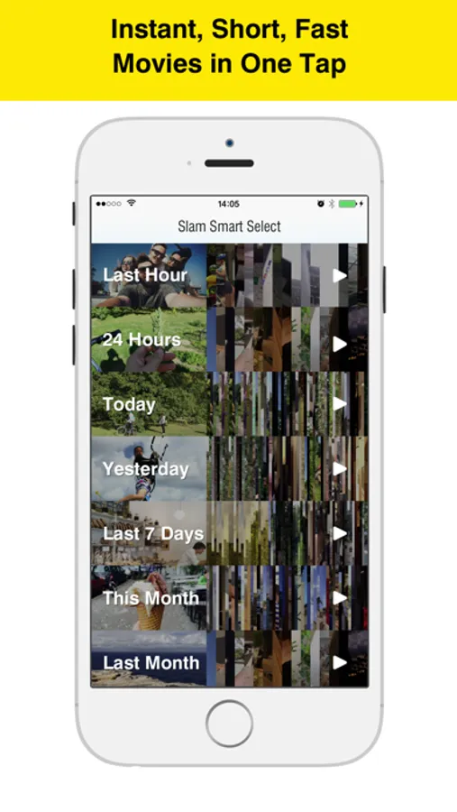 In one tap select: Last Hour, 24 Hours, Today, Yesterday, Last 7 Days, This Month, 2-6 Months Ago, This Month Last Year, Custom Albums and more. Great way to save your moments in a watchable format.