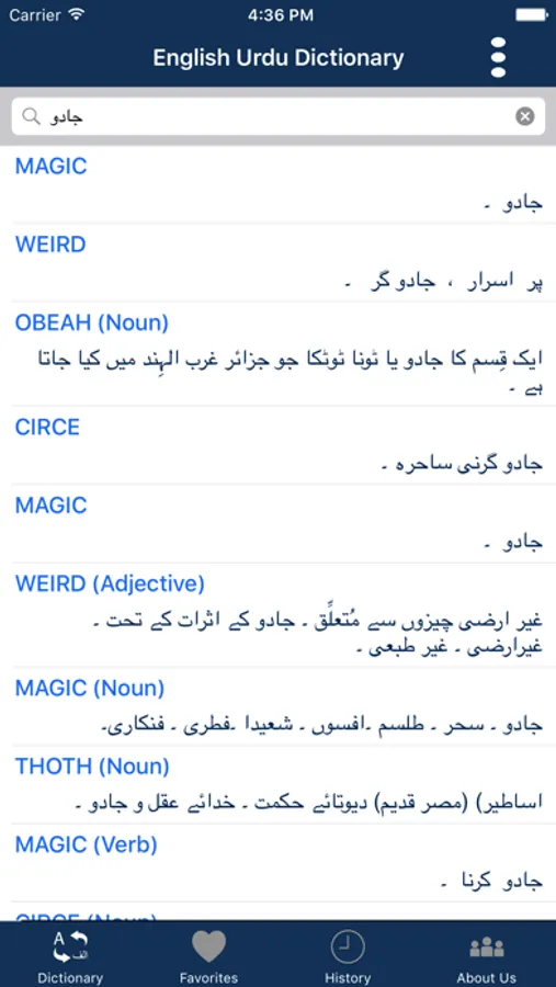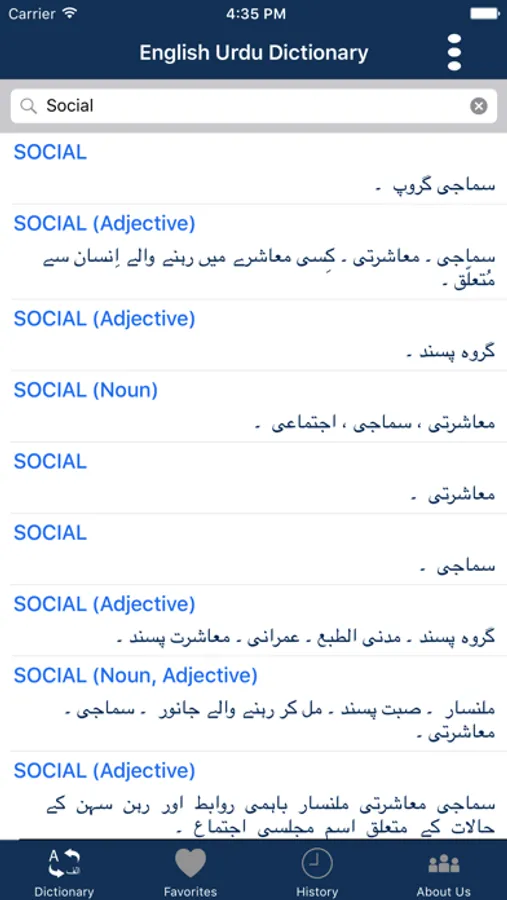Find meanings from thousands of words both in Urdu and English. Also search from phrases to enhance your English language. Use of different daily life words, phrases, idioms etc, is covered with full easy to learn grammar.