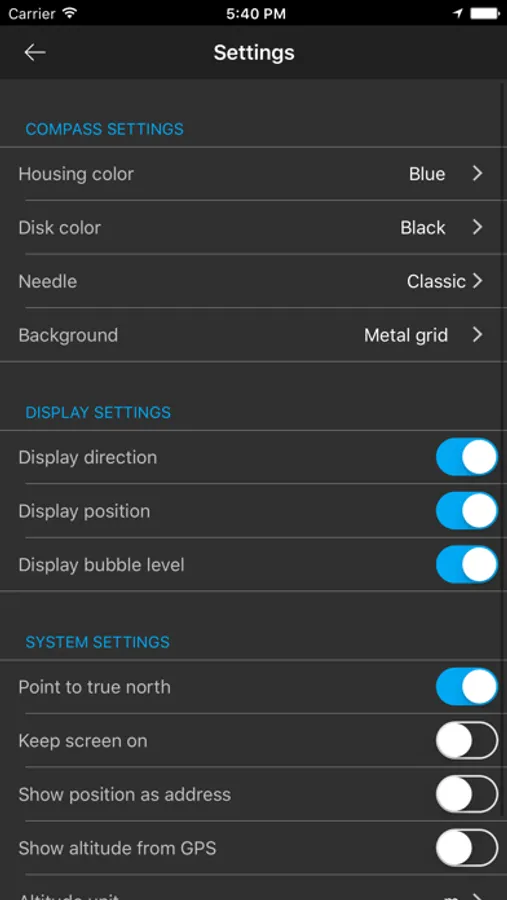 * GPS must be turned on and fixed for True North, coordinates, address and altitude, you choose "Allow" when first run
