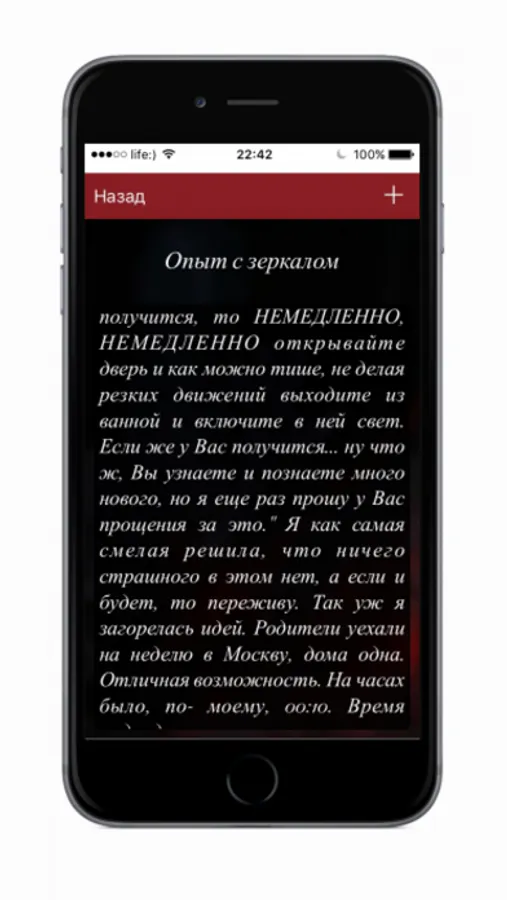 Вы верите в сверхъестественное и хотите заглянуть в потусторонний мир? Тогда это то,что Вам нужно! Это приложение не для школоты.Оно для серьезных людей с крепкими нервами. Леденящие кровь по-настоящему страшные рассказы, правдивые мистические истории,рассказы очевидцев,случаи выходящие за рамки разумного. Страшилки на любой вкус.Большая коллекция: