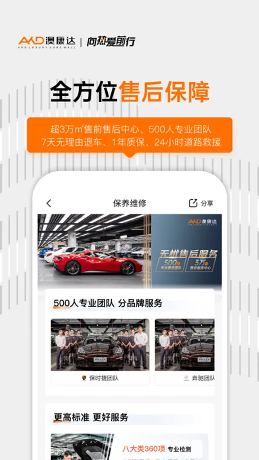 专业售后团队规模500人,分品牌提供专业服务;同时还构建了售后增值服务体系,包括7天无理由退车、1年不限公里质保和免费保养、终身免费车辆年检、24小时道路救援等,让消费者用车无忧。