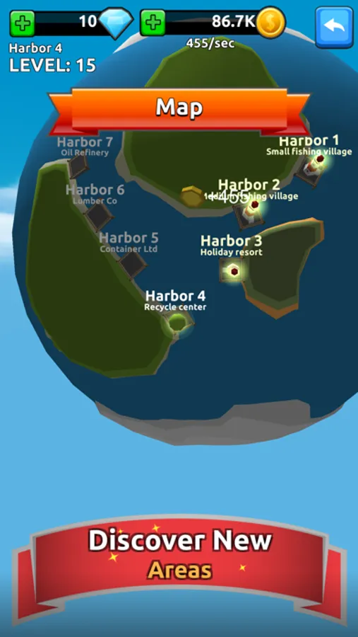 Start from a scratch with a empty harbor, and reach the most impressive harbor which has never been seen. Hire and level up staff, buy ships and environments to your harbor. While your harbor improves, new harbor areas will unlocked.