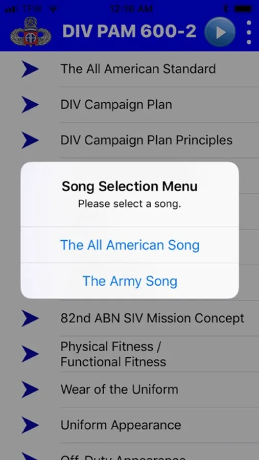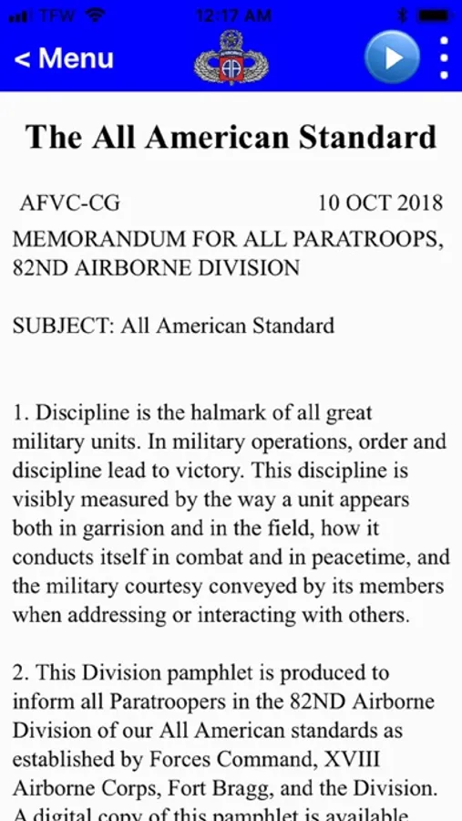 This is a simple app to display 82ND Airborne Division Pamphlet 600-2. If there is any question as to the content, please refer to the current version of the official pamphlet. This digital document does not supersede the written version.