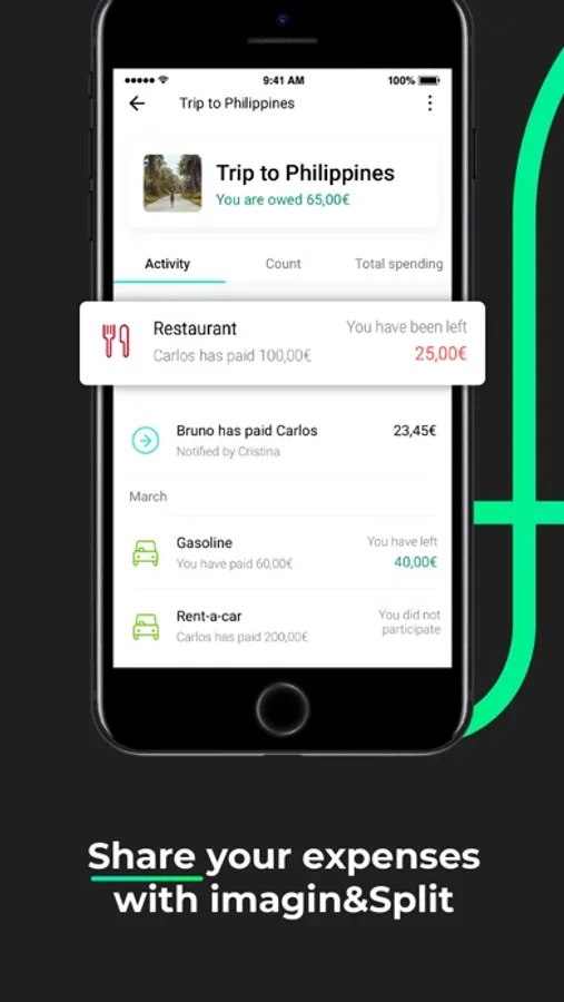 ◉ imagin&Split, the solution to split expenses and share them with your friends.