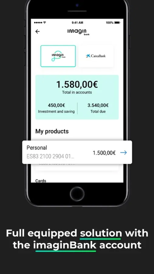 Become an imaginBank customer to have a 100% mobile current account, cards with no fees or conditions, save or withdraw money for free at CaixaBank ATMs. You can also send and receive money via Bizum transfer. Join imagin, the online bank to manage your finances.