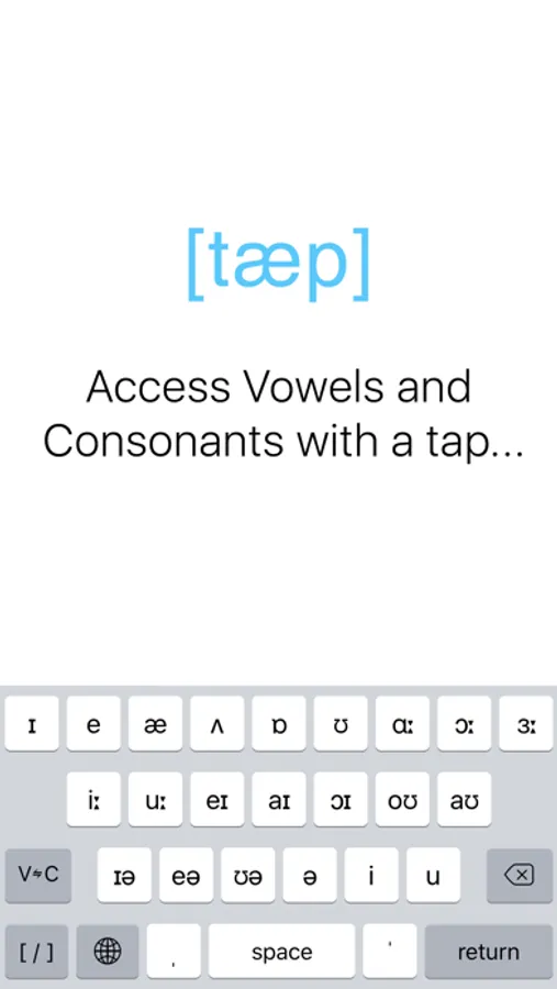 Switch between Vowels and Consonants with a single tap or use the Symbol tab to access additional signs that you'll need for transcribing.