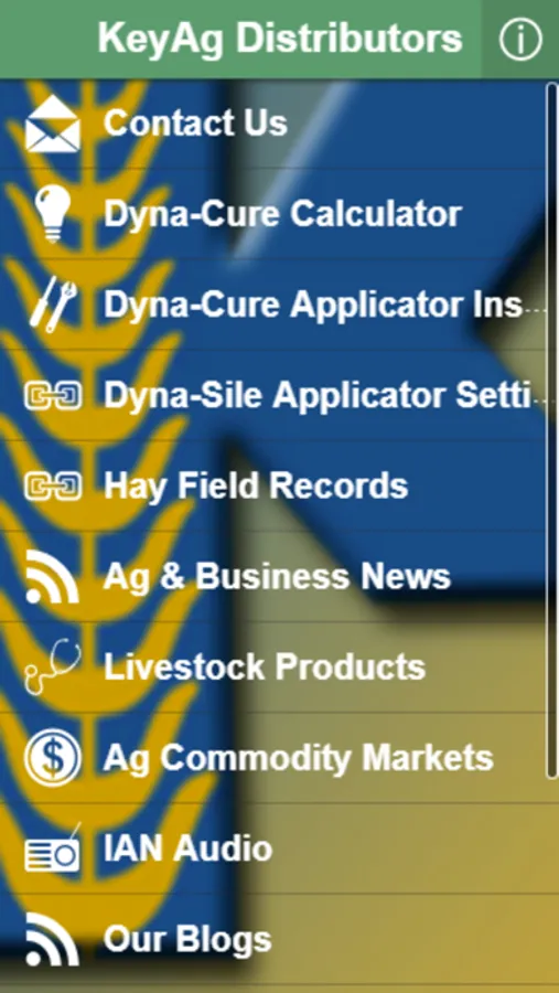 About Us, Contact Us, Hay For Sale Listings, Dyna-Cure Calculator, Livestock Products, Ag & Business News, Ag Commodity Markets, Our Blogs, Facebook, Twitter, You Tube Channel