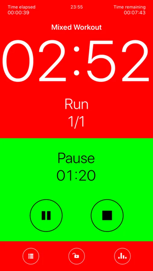 Listen to your favourite music or audio books during your workout. Interval-Workouts will keep running in the background while you are using any other app.