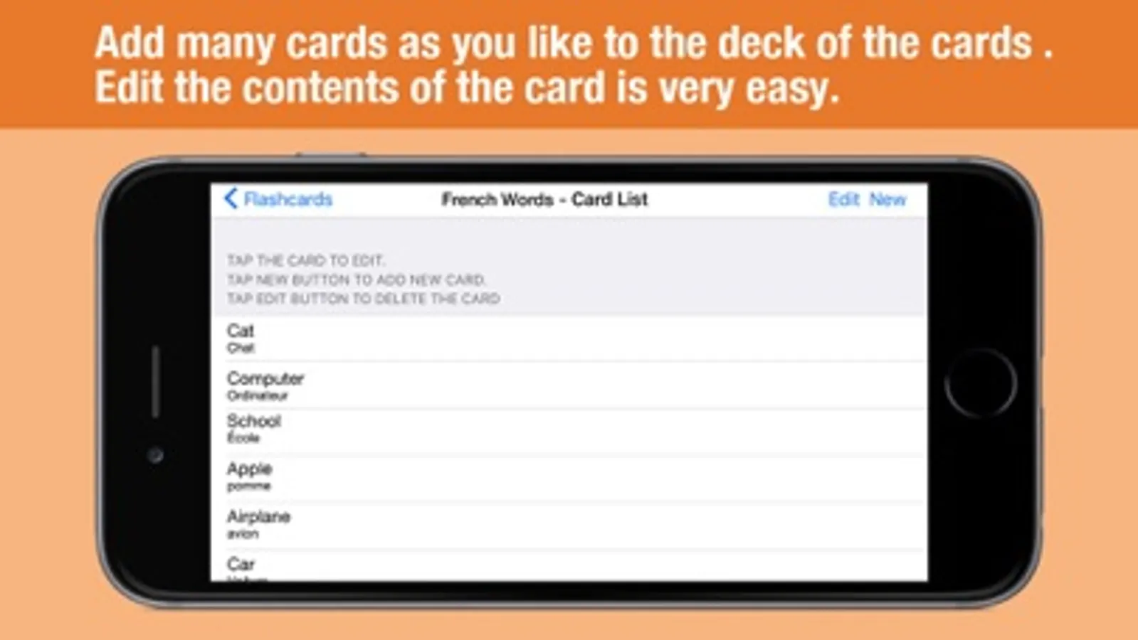 Flashcard and the cards included in the flashcard can be added/edited/deleted.
