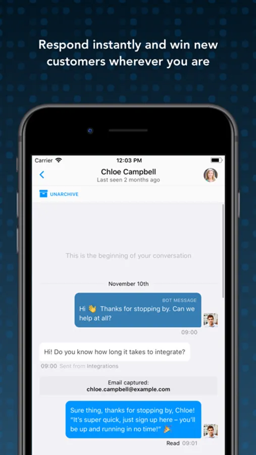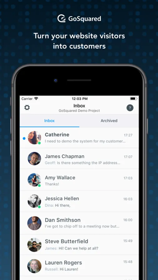 Inbox by GoSquared enables teams to talk with their customers via Live Chat while on the go.