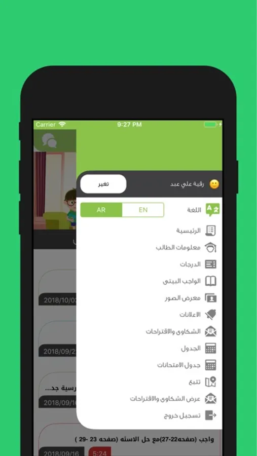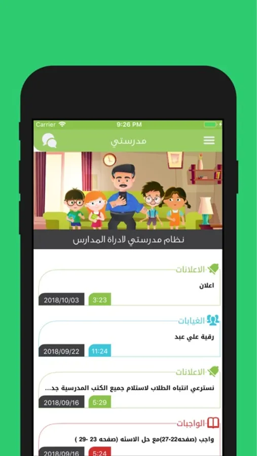 - إرسال الواجبات المنزلية والتحديثات الى الطلبة واولياء الامور.