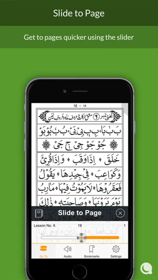 Simply tap and hold on any sentence to play the recitation,repeat and practice, and bookmark.