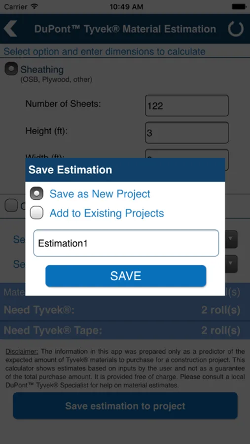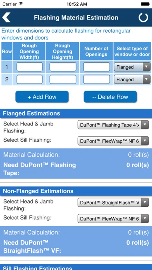 DuPont™ Tyvek® Weatherization Calculator helps users determine material quantities of Tyvek® weather barrier wrap, and flashing system products. Estimate how many rolls of material to purchase after entrering dimensions of building size and penetrations. Evaulate more accurately with the ability to choose construction use and style. Next, share calculations easily by saving and sending PDF files.
