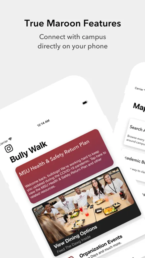 Bully Walk is the first student-developed mobile app for Mississippi State University. Easily find your way around campus and stay connected to the latest events and information. Named after the campus’ bulldog mascot - Bully, the app contains route to every building around MSU, including dorms and academic buildings. Students, parents, and visitors all agree that Bully Walk truly provides the True Maroon Experience.
