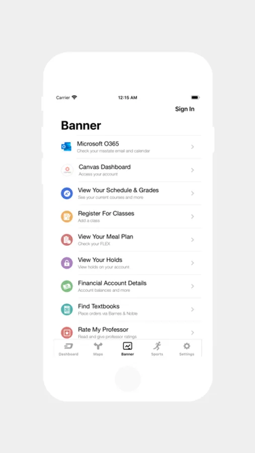 • Campus Mapping - Directions and routes to all buildings and facilities around campus. Including a great interface and vocal directions.