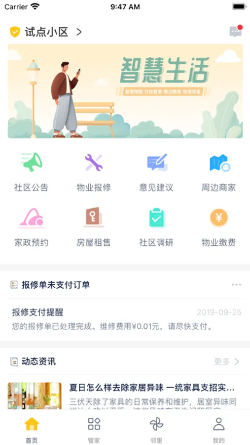 1、账单缴费:第一时间收到每月物业水费等账单管理,不用再担心忘记交管理费;