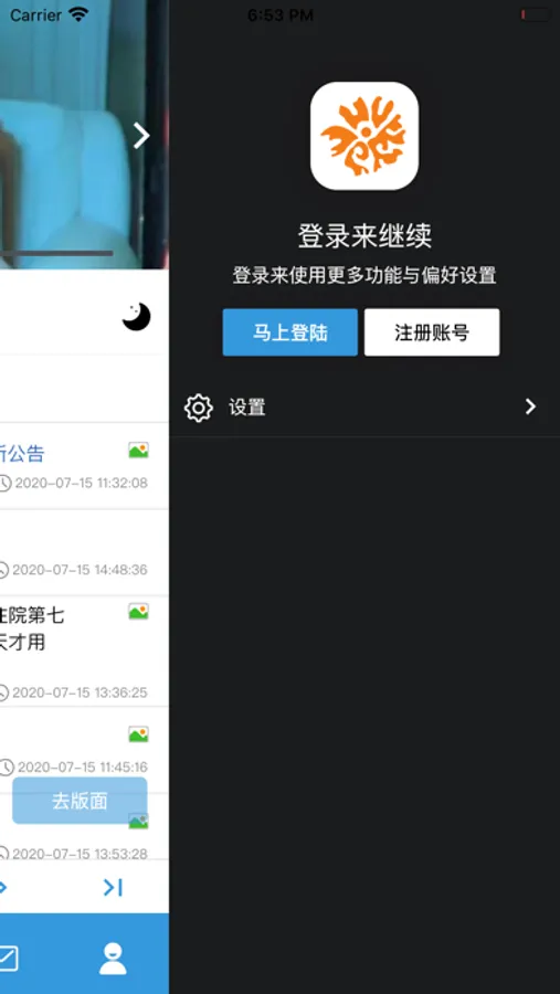 5. 设置。夜间模式选取,缓存,及网络设置等App相关设置。