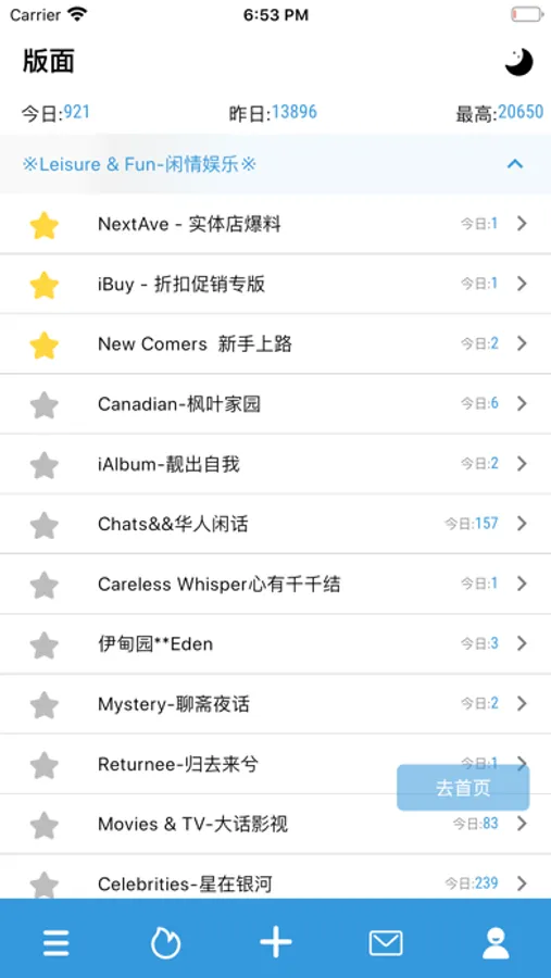 3. 收藏。查看您收藏的板块,帖子和浏览历史。