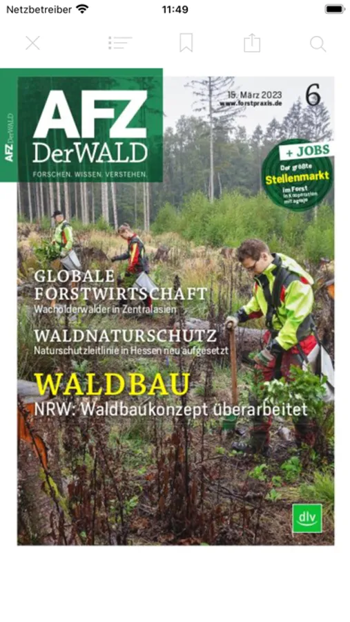 AFZ-DerWald ist die unentbehrliche Wissensquelle für Förster und Waldbesitzer, Gemeinden und andere Verwaltungen. Als das kompetente Forum für Waldwirtschaft informiert es zweimal im Monat verbandsunabhängig und umfassend über alle Fragen, die im Rahmen der Erhaltung, Pflege und wirtschaftlichen Entwicklung des Waldes von Bedeutung sind.