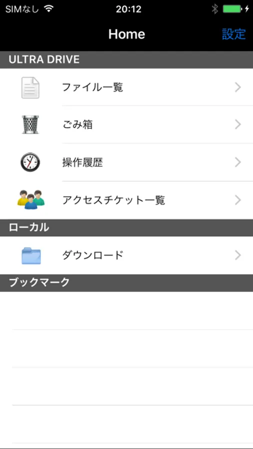 本アプリケーションのトップ画面にある設定より、ULTRA DRIVEアカウントとパスワードを設定し、画面に出てくるDiskアイコンをタップするだけでご利用が可能です。