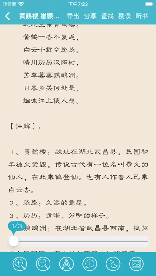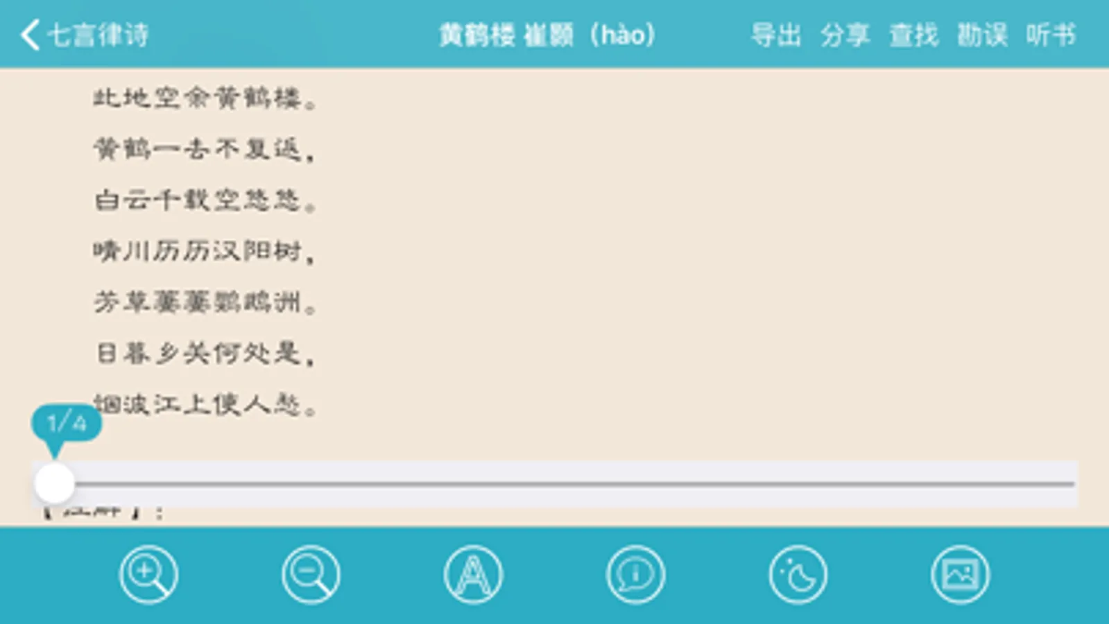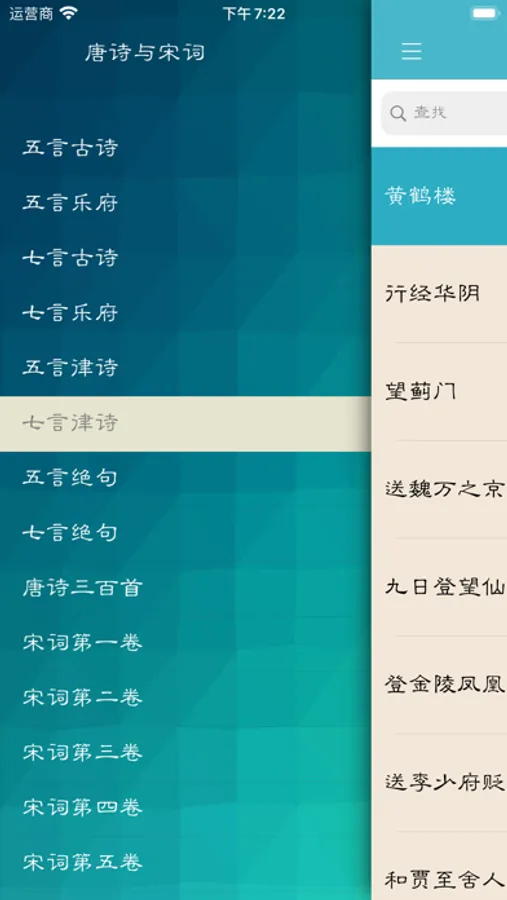 这个APP主要汇集了《唐诗三百首》与《宋词三百首》的诗词,以及对诗词的注解,翻译与赏析。方便用户阅读,玩味,欣赏与研究诗词。