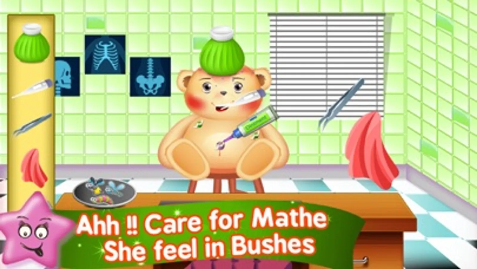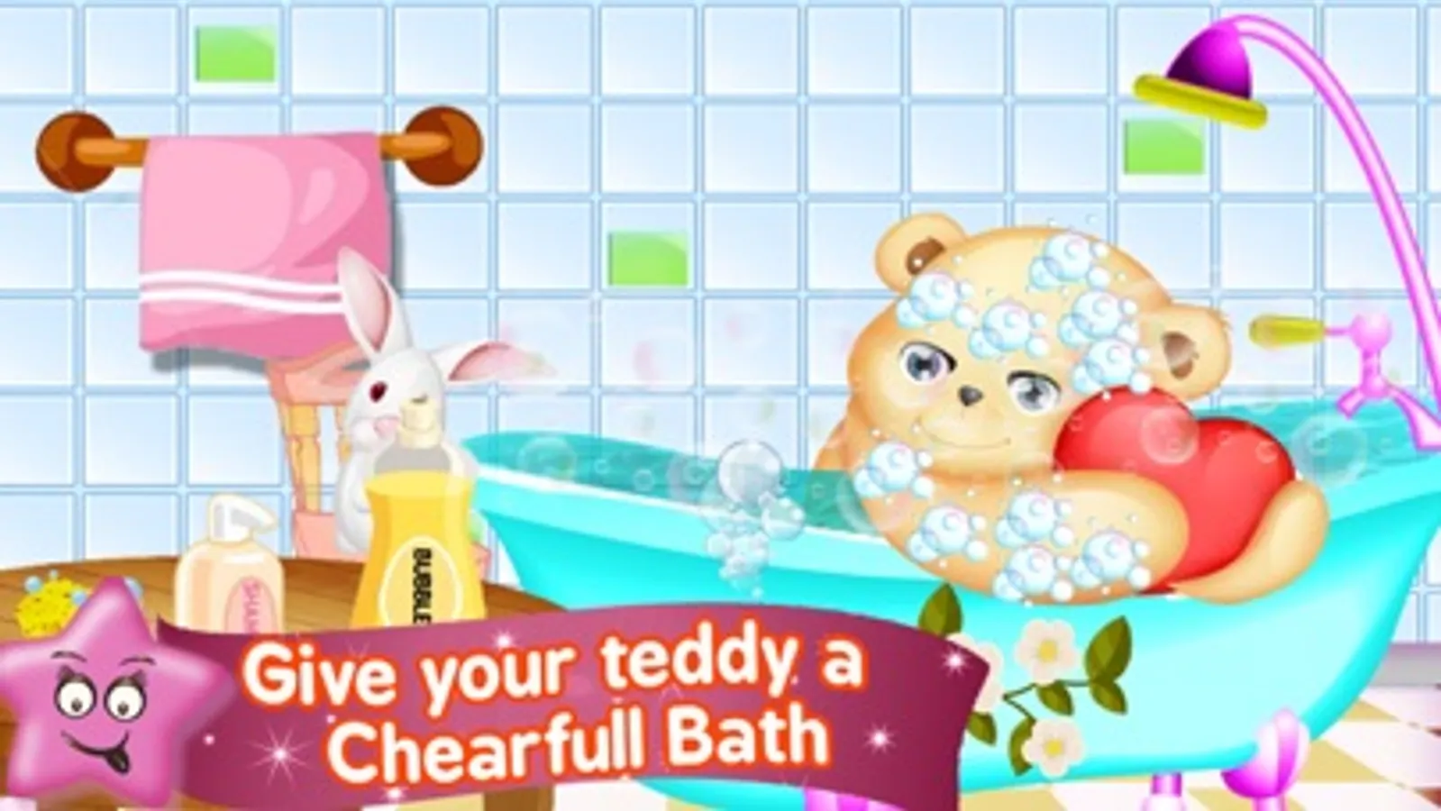 Our cute bear is dirty, he needs to get neat and clean. Give him a hot water bubble-bath by applying soap and shampoo in the hot water tub. Enjoy washing the bear in bath zone.