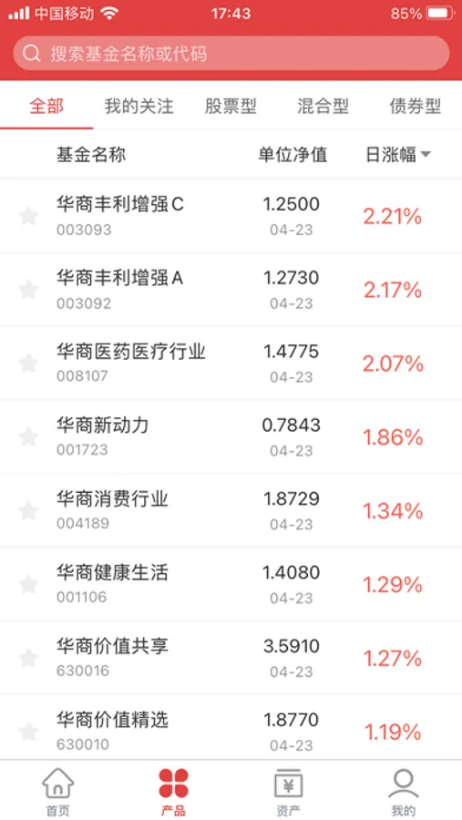 2、 净值查询:可查询华商旗下基金净值、涨跌幅等数据信息,可添加产品关注;