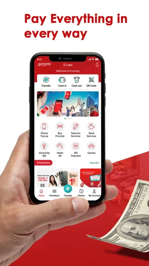 - Transfer to your family and anyone anywhere, anytime via eMoney account or Non-eMoney account users