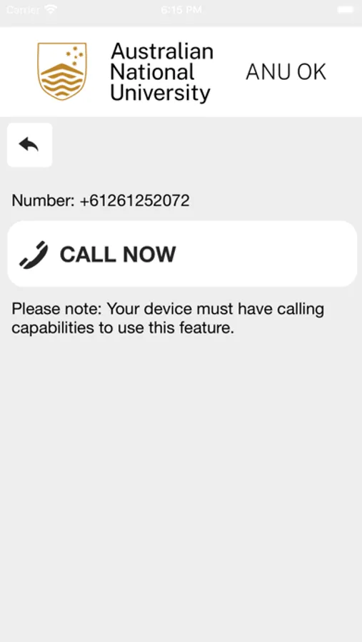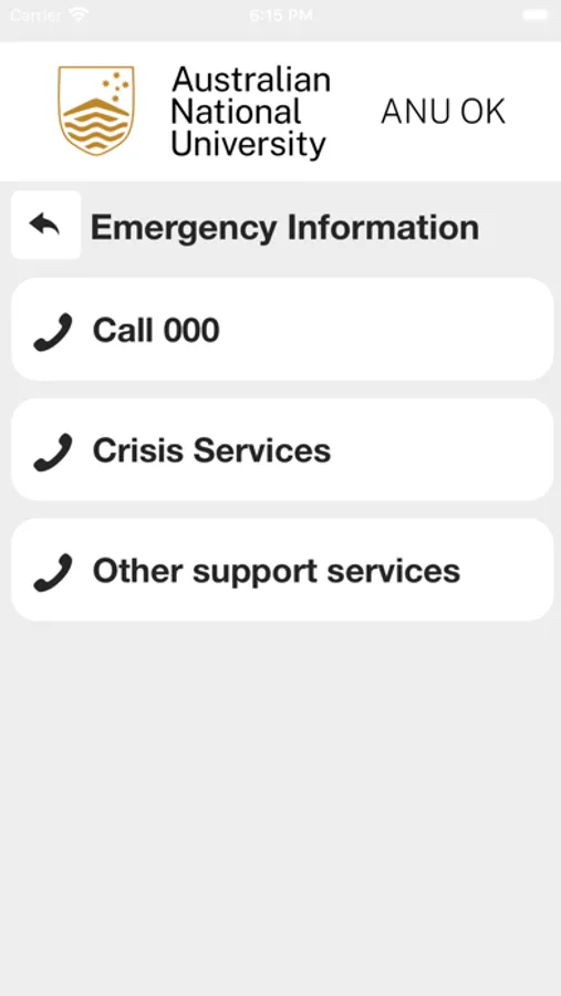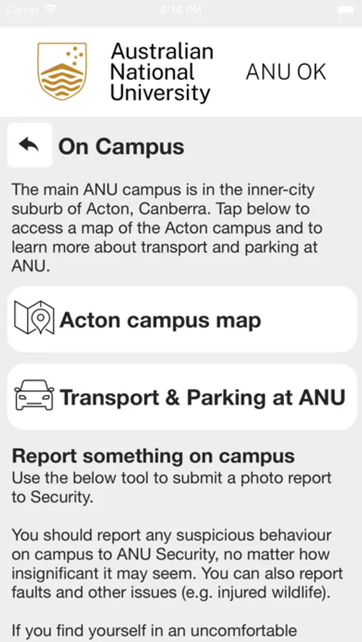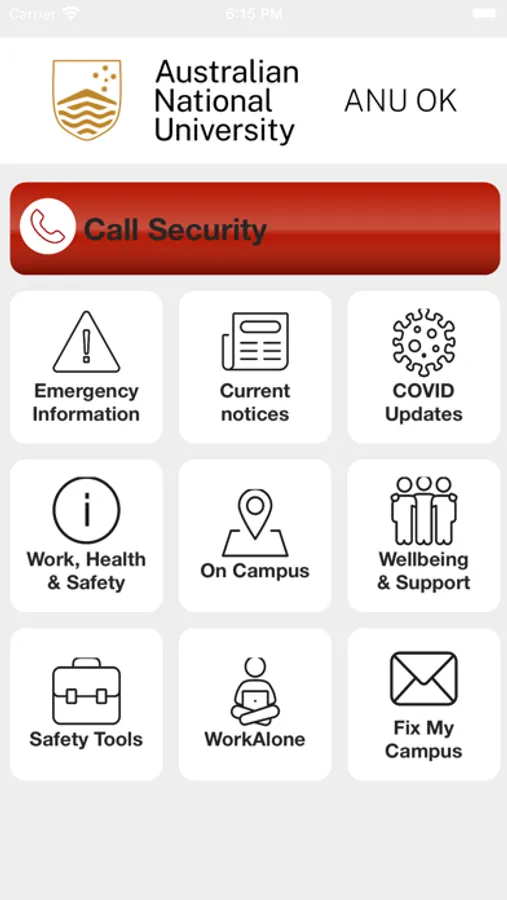 - Chat with Security: Communicate live with safety staff at ANU via chat.