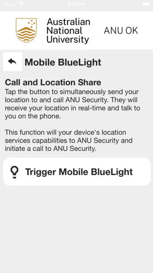 - Mobile Bluelight: Send your location to ANU security in real-time in case of a crisis