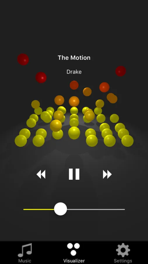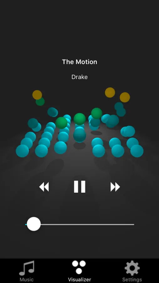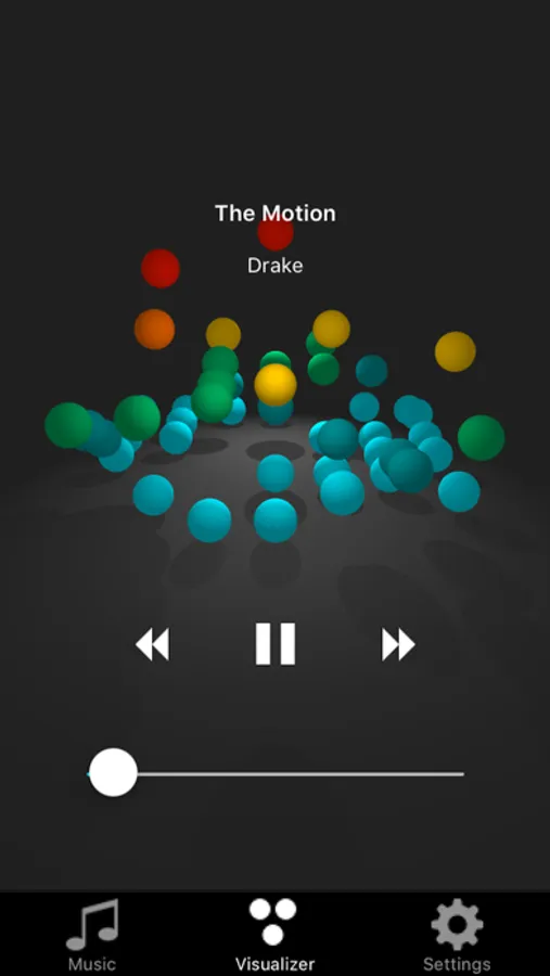 In the Sphaudio visualizer application, audio waveform data is mapped to spherical balls. Each ball corresponds to a specific frequency range and bounces up and down according to the average amplitude of the nodes sampled in their corresponding frequency ranges.