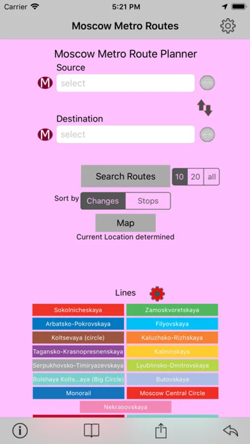 This App helps you find routes which can be used to travel from one location to another in Moscow city.