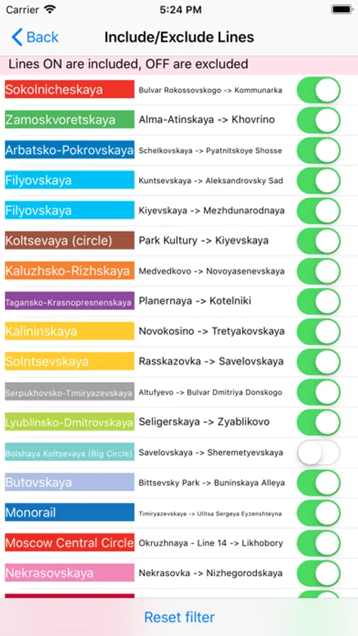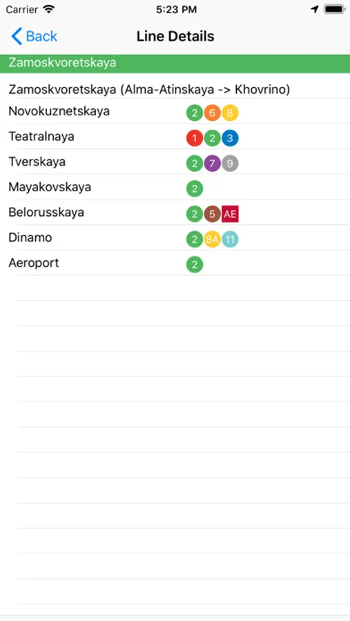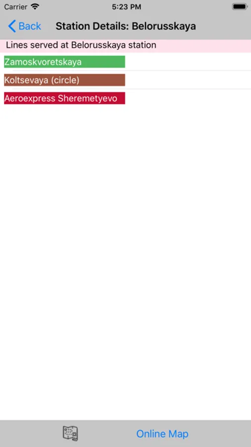You can also view the detailed station list for each train line in Moscow. You can long press on any station name from the list to see it on maps.