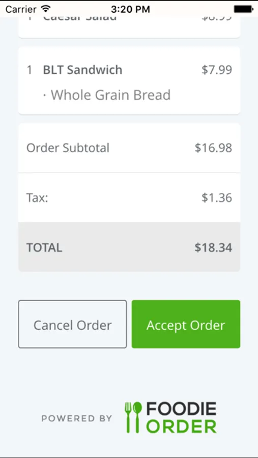 Foodie Order Ordering System for the iPhone and iPad lets you view incoming and past online orders.