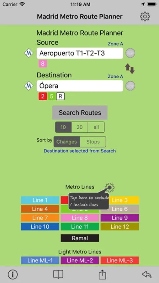 This App helps you find metro routes which can be used to travel from one location to another in Madrid city.