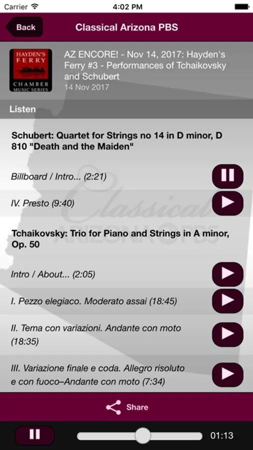 “Classical Arizona PBS” is powered by InstantEncore. Content is produced by Central Sound at Arizona PBS, the premier audio-media production department of Arizona PBS. For more information, please visit us www.azpbs.org or on Social Media: