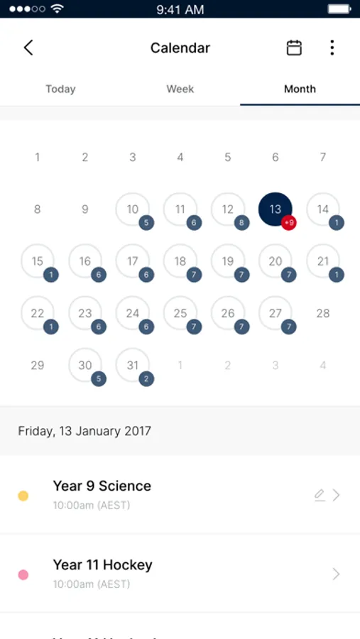 The School Calendar contains details on events and key dates at the School. Click on the event to see further details and information or search for an event. The calendar can also be used as an eDiary with students having the ability to add homework tasks for completion. The calendar menu item will show how many events are in your calendar for that day.