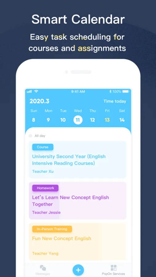 Pop on School is a product developed for schools and institutes to provide full support to teachers’ innovative teaching methods. At Pop on School, teachers can use web or mobile app to assign students with AI repetitive language training, connect with designated native speakers and conduct cross-cultural communication with schools overseas. Pop on Schools optimizes the process of teaching effectiveness and improves learning efficiency.