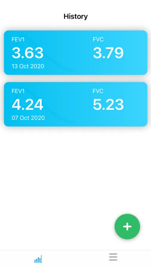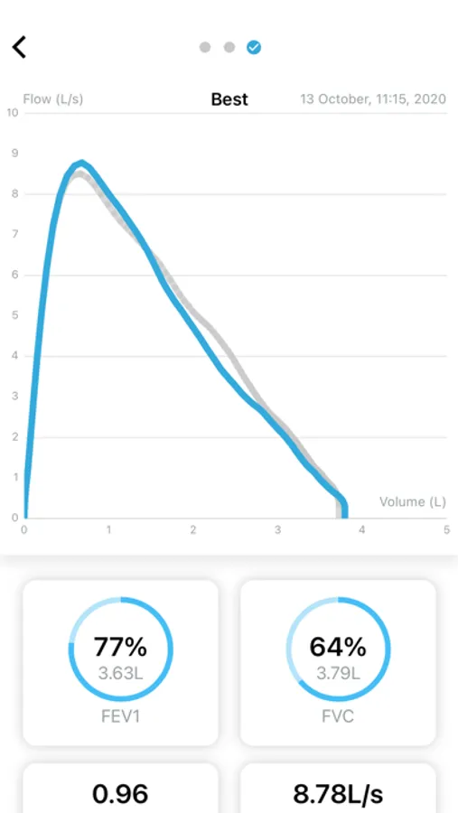 • The app connects with Health App from Apple, so you can export spirometer data (FVC, FEV1, PEF) from the Clinical trial app to the Health App.