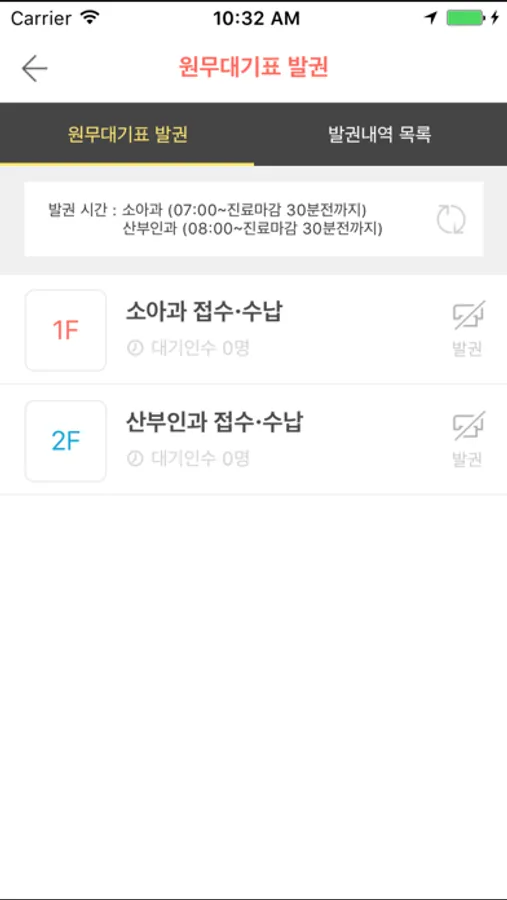 원무대기표 발권 기능이 정상적으로 작동하지 않습니다.