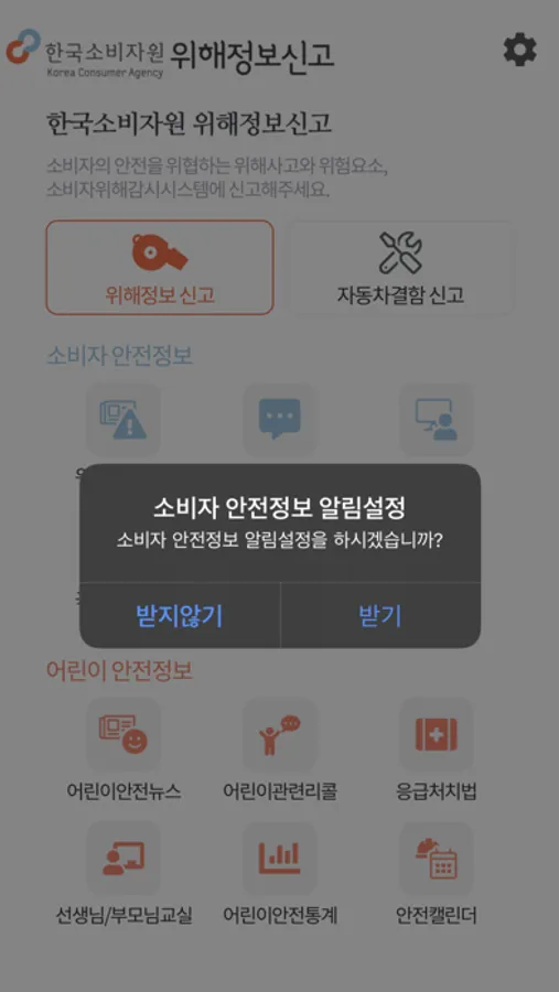 위해정보신고앱은 한국소비자원에서 운영하는 앱으로 제품, 시설물, 서비스를 이용하는 과정에서 소비자가 다치거나 사망한 경우, 혹은 그러한 위험이 있는 경우 소비자안전과 관련된 사례를 제보·신고하는 앱입니다.