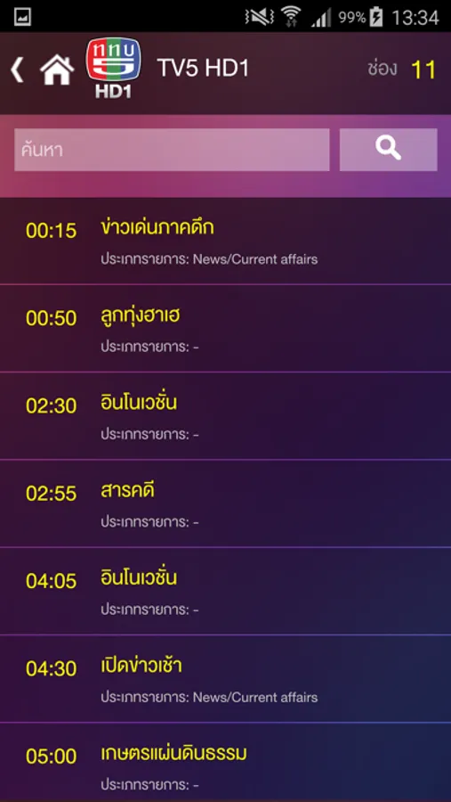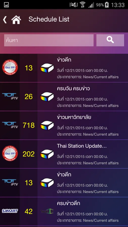 โดนการค้นหารายการนั้นอัพเดตทุกวัน ทำให้คุณได้ตารางเวลาของรายการทีวีที่ต้องการดู ไม่คลาดเคลื่อน