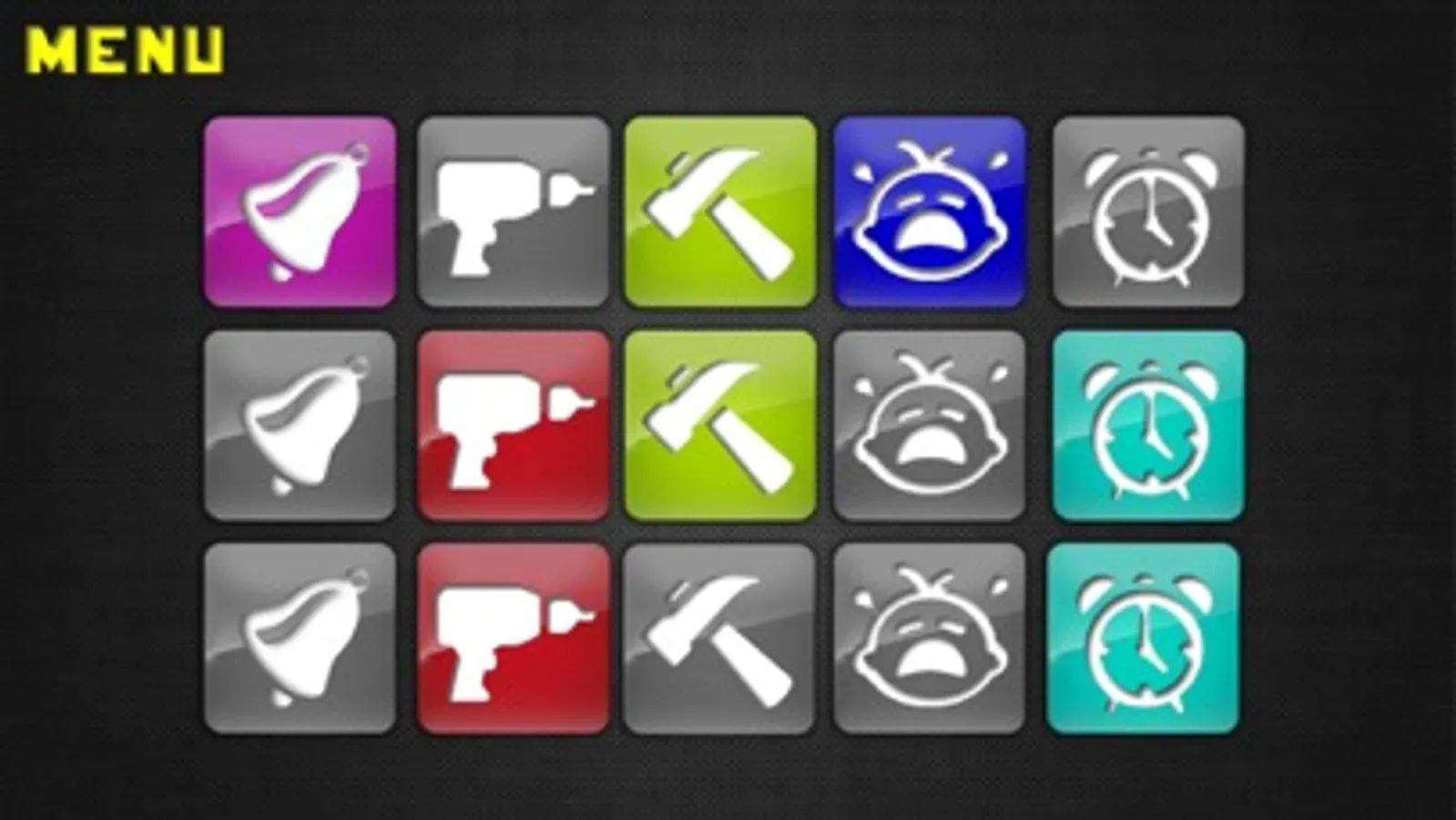 A wide range of annoying sounds that will help you to wake up! There is the sound of drills, cries, the hammer, the alarm signal, etc.
