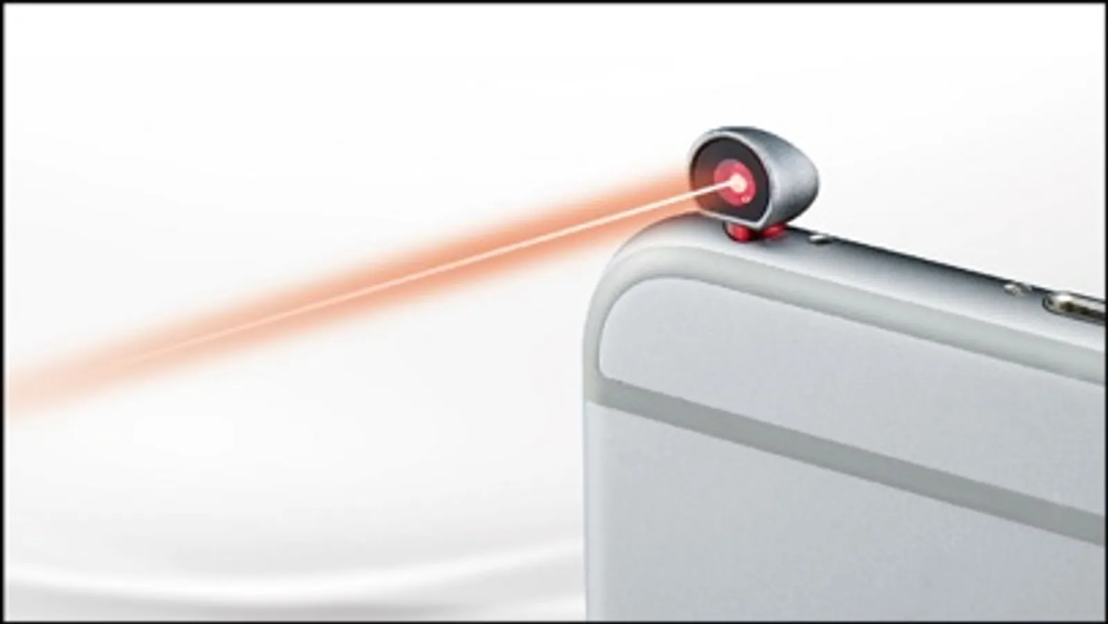 The proprietary hybrid design allows the iPin Spatial Ruler to stay plugged in without affecting phone speaker functions. When turning on the laser, the cap of the Ruler will display the brand logo for aesthetic appreciation.